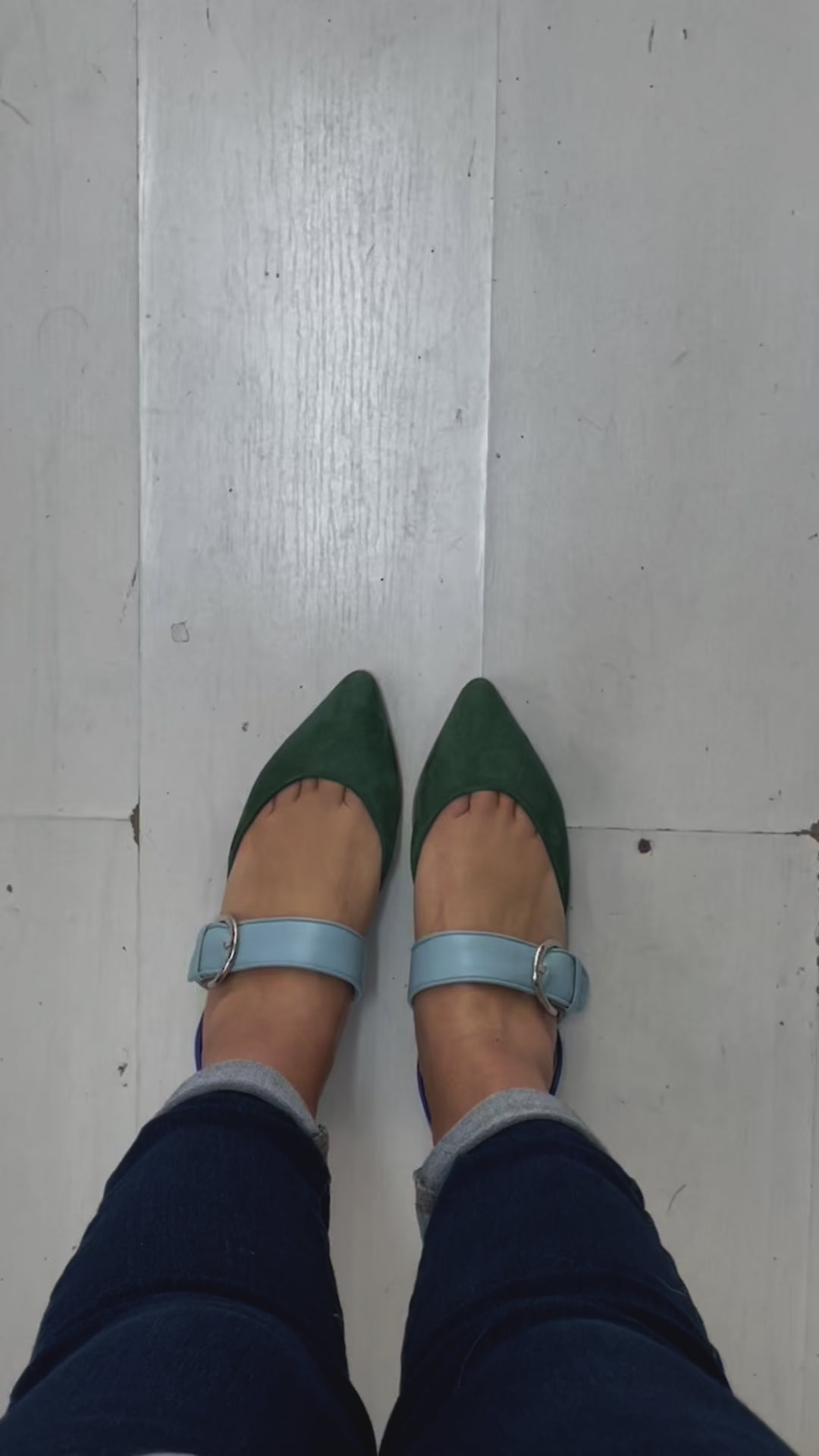 The Allison model in a trio of colors. Made of a very soft suede and nappa leather, they are characterized by the central band with an adjustable buckle.
